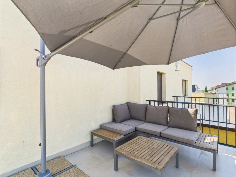 Apartamentul se vinde mobilat si utilat: plita, cuptor, hota, masina de spalat rufe, masina de spalat vase, frigider cu congelator, cuptor cu microunde si expresor de cafea. Incalzirea se realizeaza prin pardoseala, prin intermediul centralei proprii. Apartamentul dispune de sistem de climatizare (A.C.) si 2 locuri de parcare.