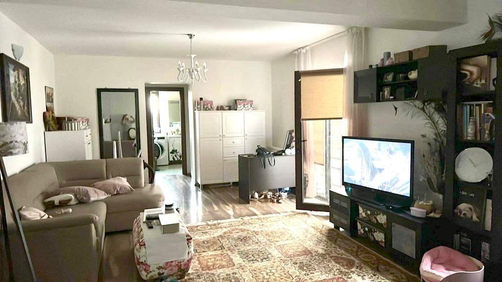 Apartamentul se vinde mobilat si utilat: plita electrica, cuptor electric, hota, aragaz, masina de spalat rufe, frigider cu congelator, TV.