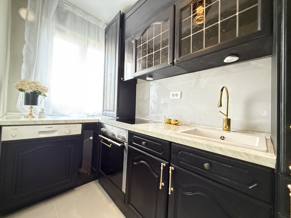 Apartamentul se vinde mobilat si utilat: plita, cuptor, hota, aragaz, masina de spalat rufe, masina de spalat vase, frigider cu congelator.