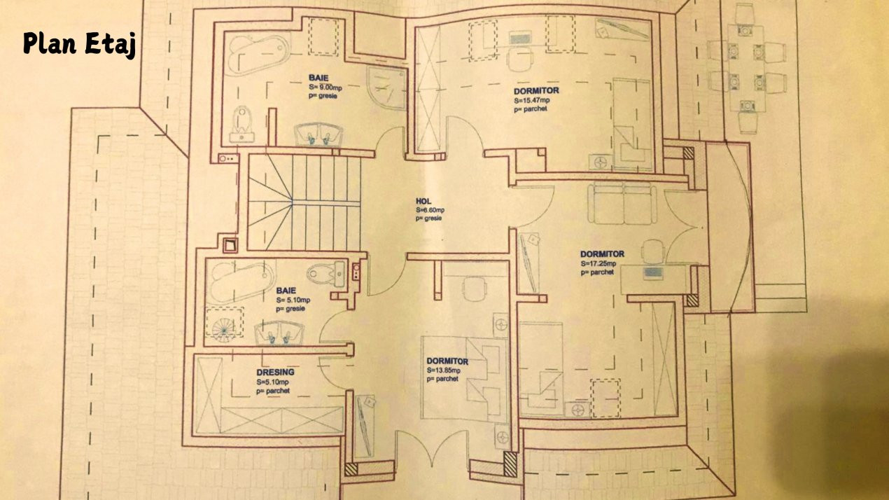 - Mansarda: Hol, 3 Dormitoare, 2 Bai, Dressing, 2 Balcoane.