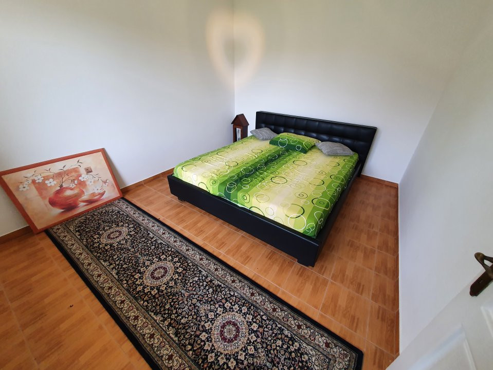 Casa se vinde mobilata si utilata: plita electrica, cuptor electric, hota, masina de spalat rufe, masina de spalat vase, frigider cu congelator, cuptor cu microunde. Casa dispune de centrala proprie electrica si incalzire in pardoseala cu termostat in fiecare camera si boiler electric pentru apa calda menajera. Confortul termic controlat prin wireless. Camere Supraveghere video cu acces de pe telefon. Minim 3 locuri de parcare. Gard la strada fier forjat. In curte mai este o casa batraneasca folosita ca anexa (spatiu de depozitare). Toate actele la zi.