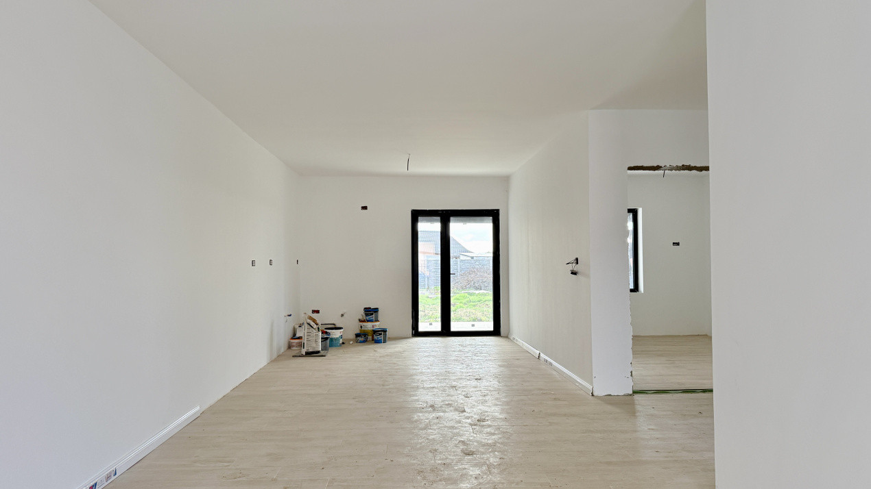 FOXFORT propune spre vanzare casa tip duplex, distribuit pe parter, situat in Bucovat, avand un numar de 3 camere, cu o suprafata utila de 68,5 mp si teren 360 mp. Anul constructiei este 2026, structura este din beton cu zidarie din caramida. Imobilul dispune de urmatoarele utilitati: curent electric, apa, gaz, fosa septica, drum pietruit, acces internet, fibra optica.