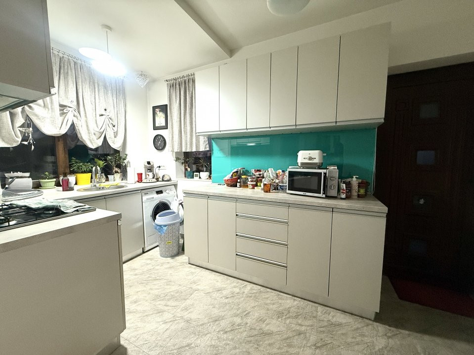 Casa se vinde mobilata si utilata complet, conform pozelor. Pe partea de electrocasnice, avem urmatoarele: plita pe gaz, cuptor, hota, masina de spalat rufe, frigider cu congelator, cuptor cu microunde, Tv.