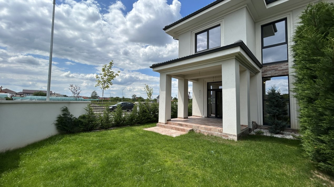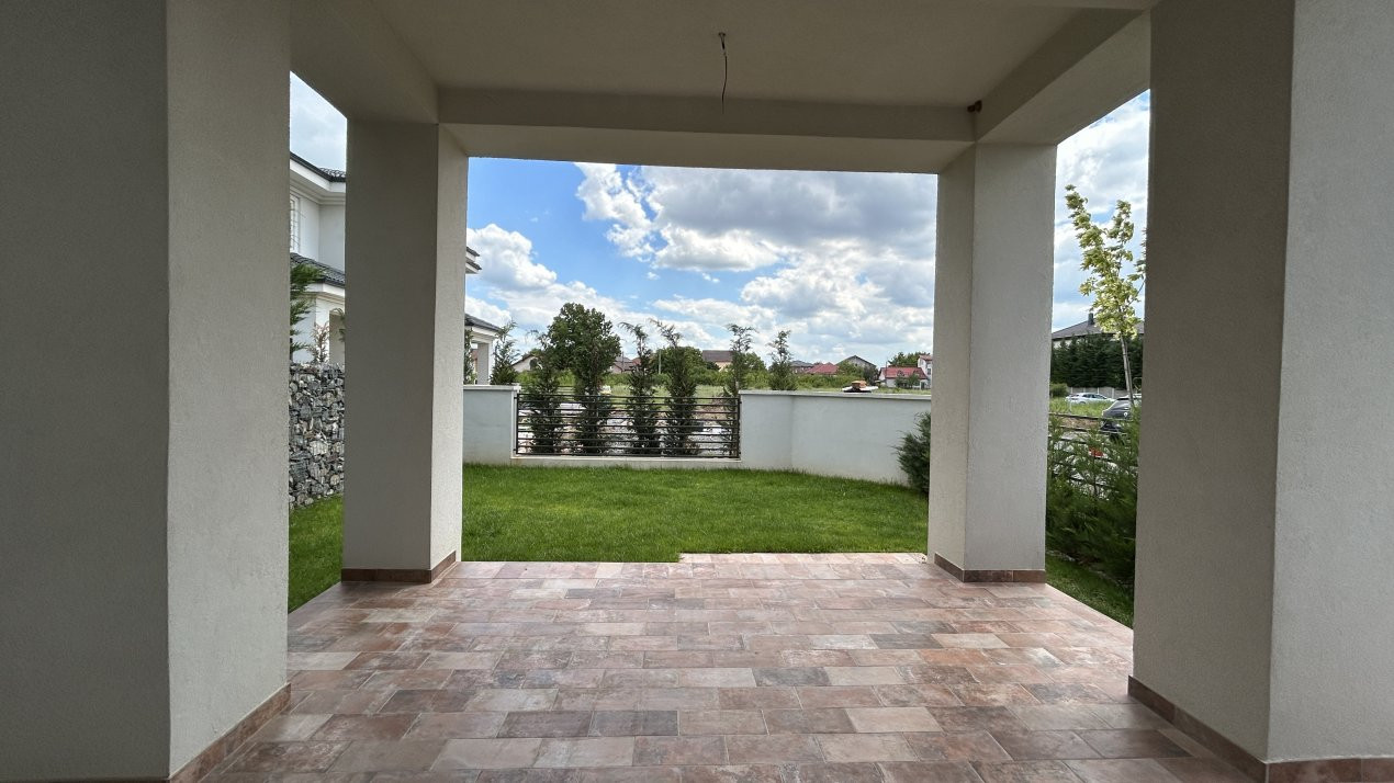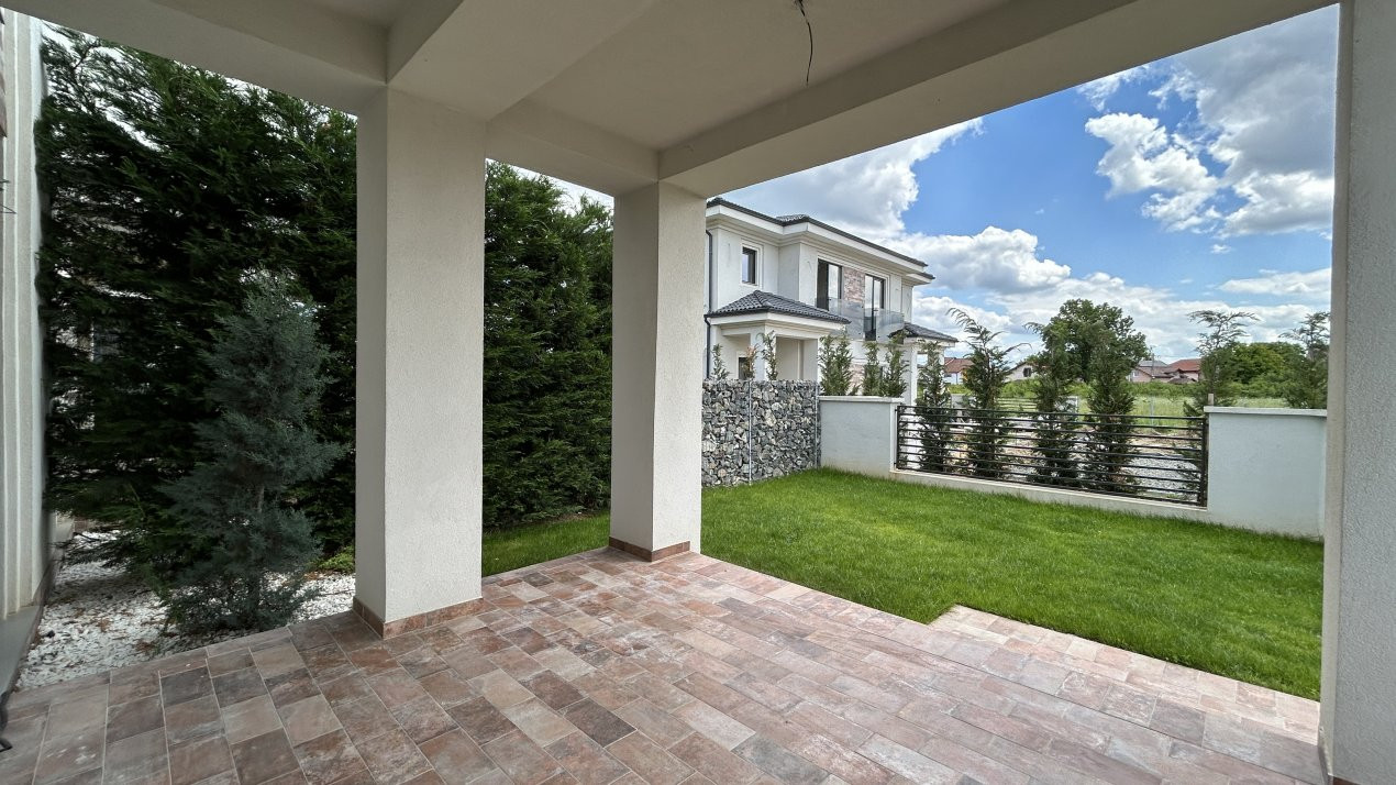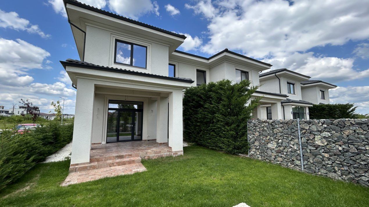Casa dispune de 2 locuri de parcare. Gardul despartitor va fi din plasa metalica cu fundatie din beton, iar cel exterior din beton cu grilaj metalic.