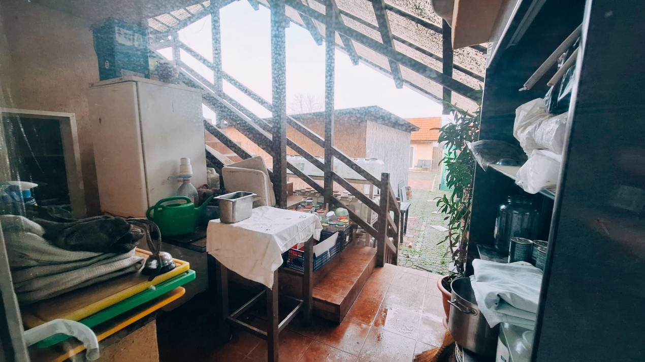 Casa se vinde mobilata si utilata: plita, cuptor, hota, masina de spalat rufe, frigider cu congelator.