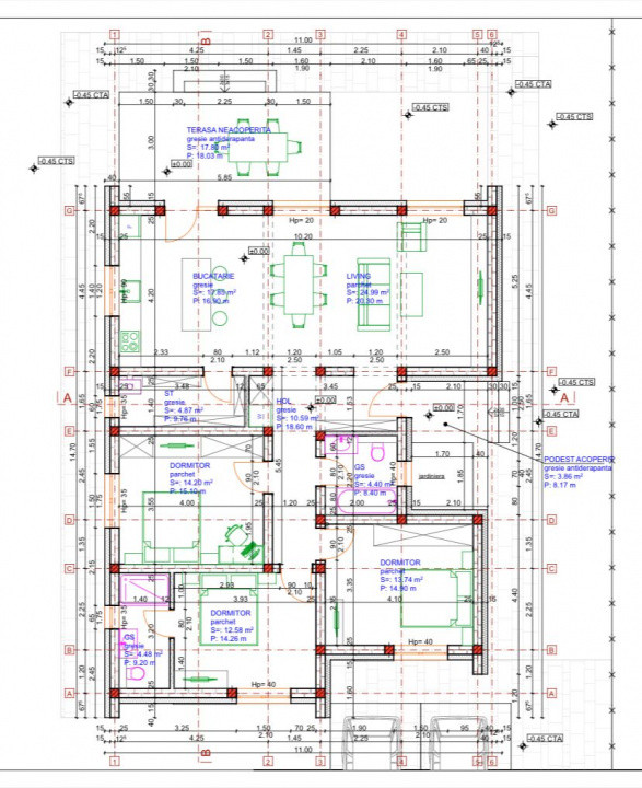 - Parter: hol, living, 2 bai, bucatarie, 3 dormitoare, terasa;