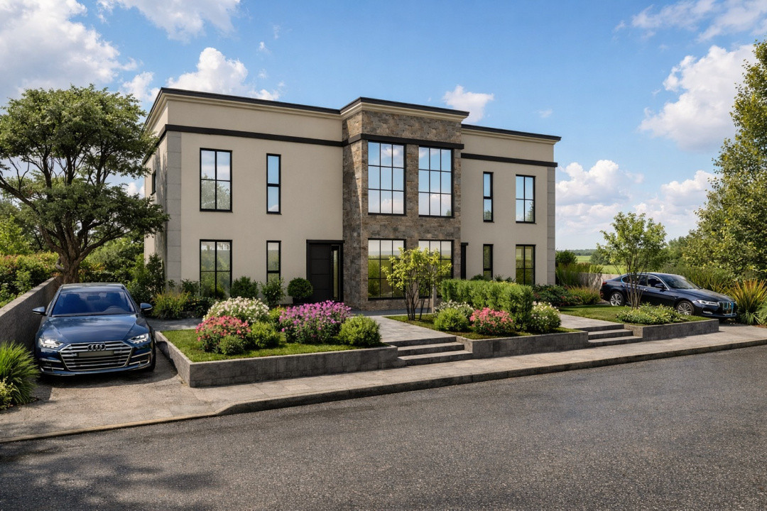 FOXFORT propune spre vanzare casa tip duplex, cu un regim de inaltime Parter + 1 Etaj, situata in Giarmata, zona Nord-Est, avand un numar de 4 camere, cu o suprafata utila de 130 mp si teren 288 mp. Anul constructiei este 2026, structura metal, material panouri Sip. Imobilul dispune de urmatoarele utilitati: curent electric, apa, canalizare, gaz.