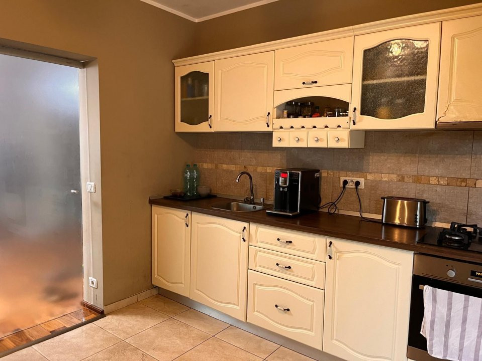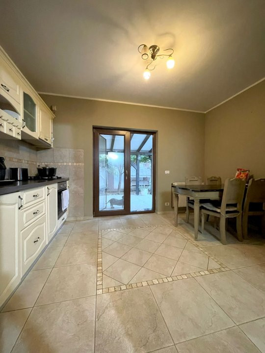 Casa se vinde mobilata si utilata: plita, cuptor, hota, aragaz, masina de spalat vase, frigider cu congelator.
