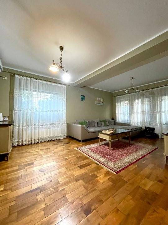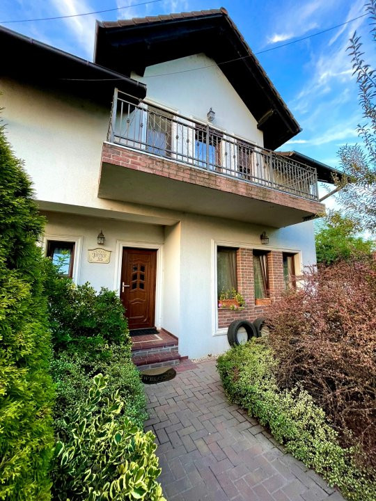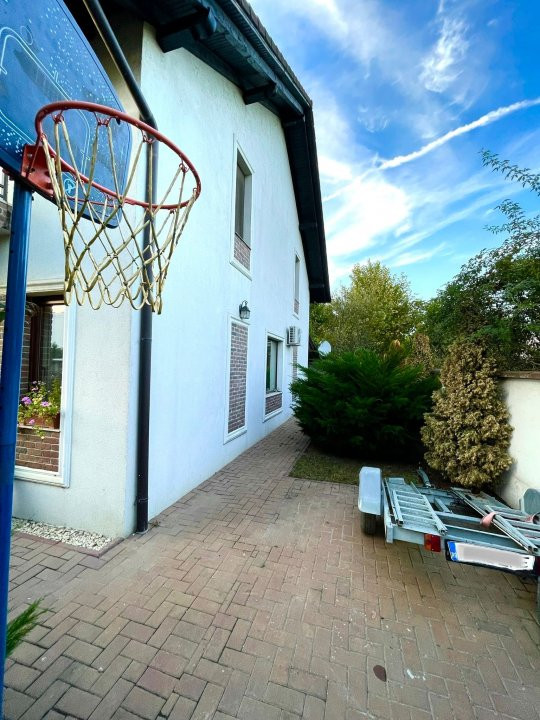 Proprietatea dispune de teren cu gazon si pavaj, are o gradina cu arbusti ornamentali in fata casei iar in curte pe suprafata pavata se mai pot parca 2 autoturisme. Proprietatea dispune si de supraveghere video.