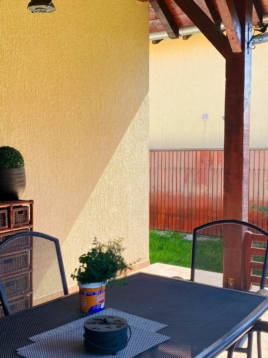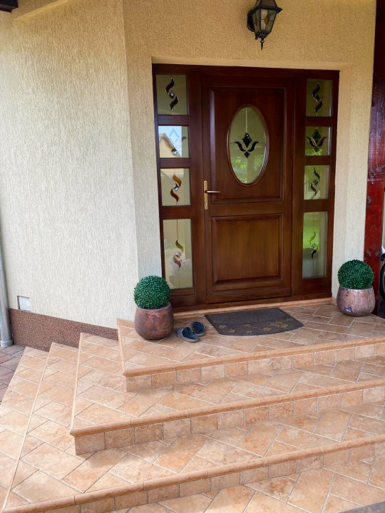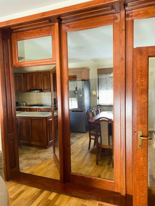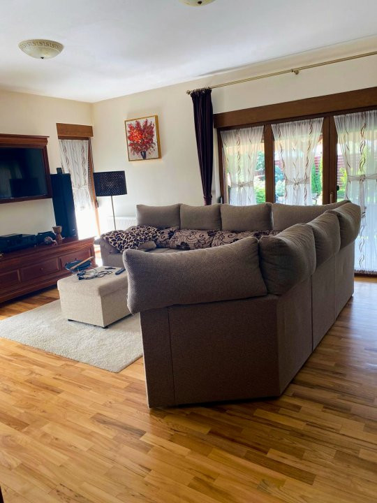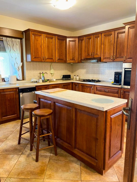 Casa se vinde mobilata si utilata: cuptor, hota, aragaz, masina de spalat rufe, masina de spalat vase, frigider cu congelator, Tv.