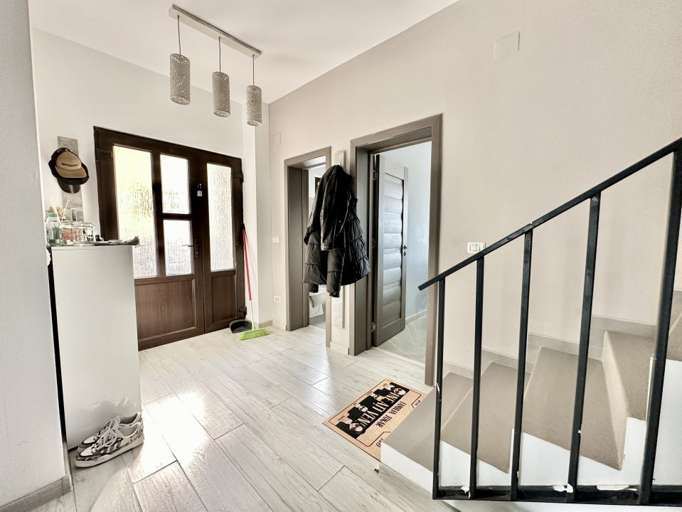 Casa se vinde mobilata si utilata: plita, cuptor, hota, masina de spalat rufe, frigider cu congelator.
