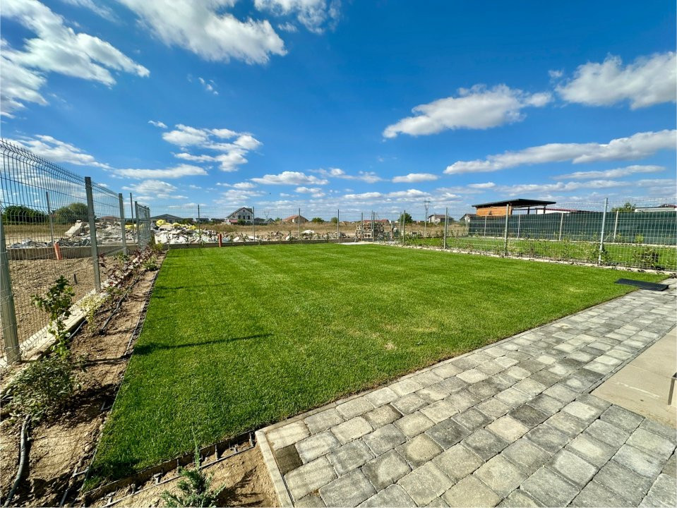 - Curte complet amenajata cu gazon, sistem de irigatii si plante ornamentale