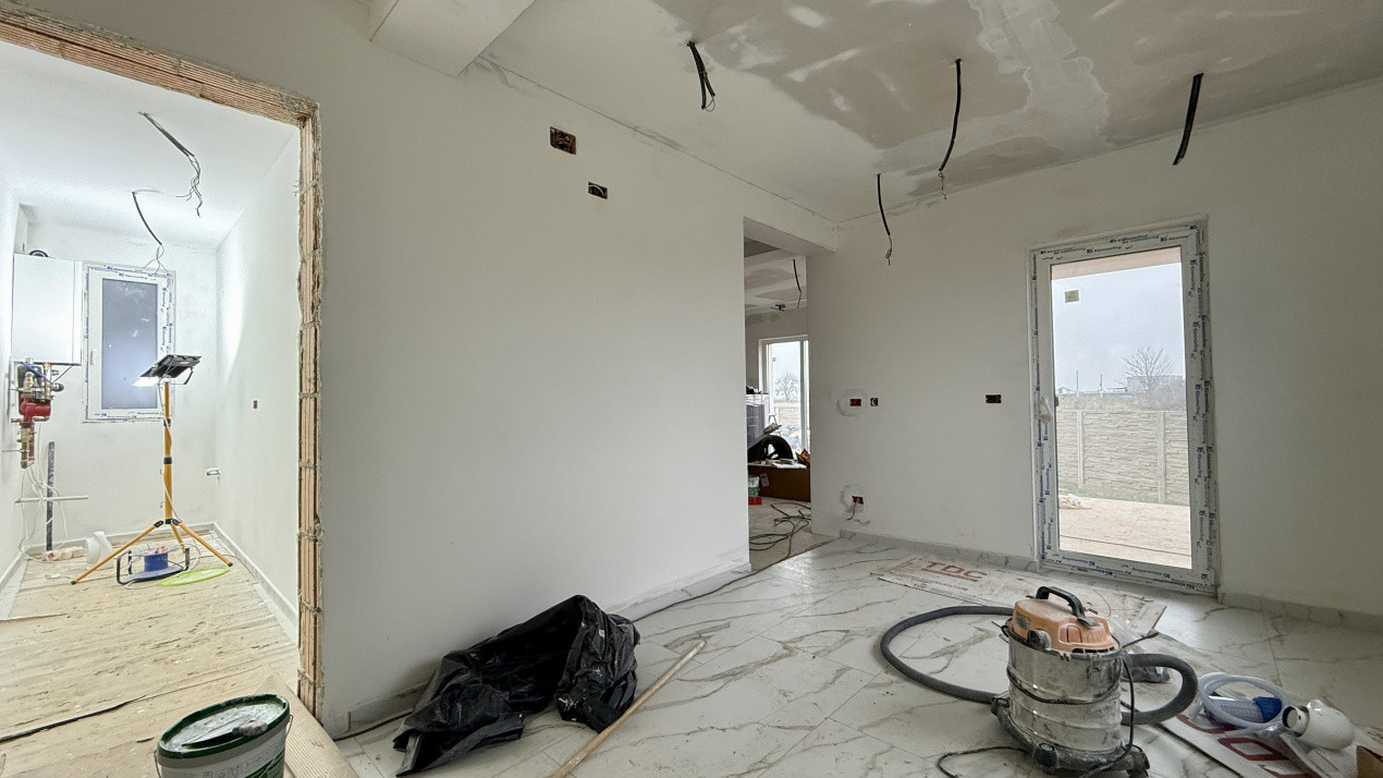 - Parter: hol, living, baie, bucatarie inchisa, dormitor, camara;