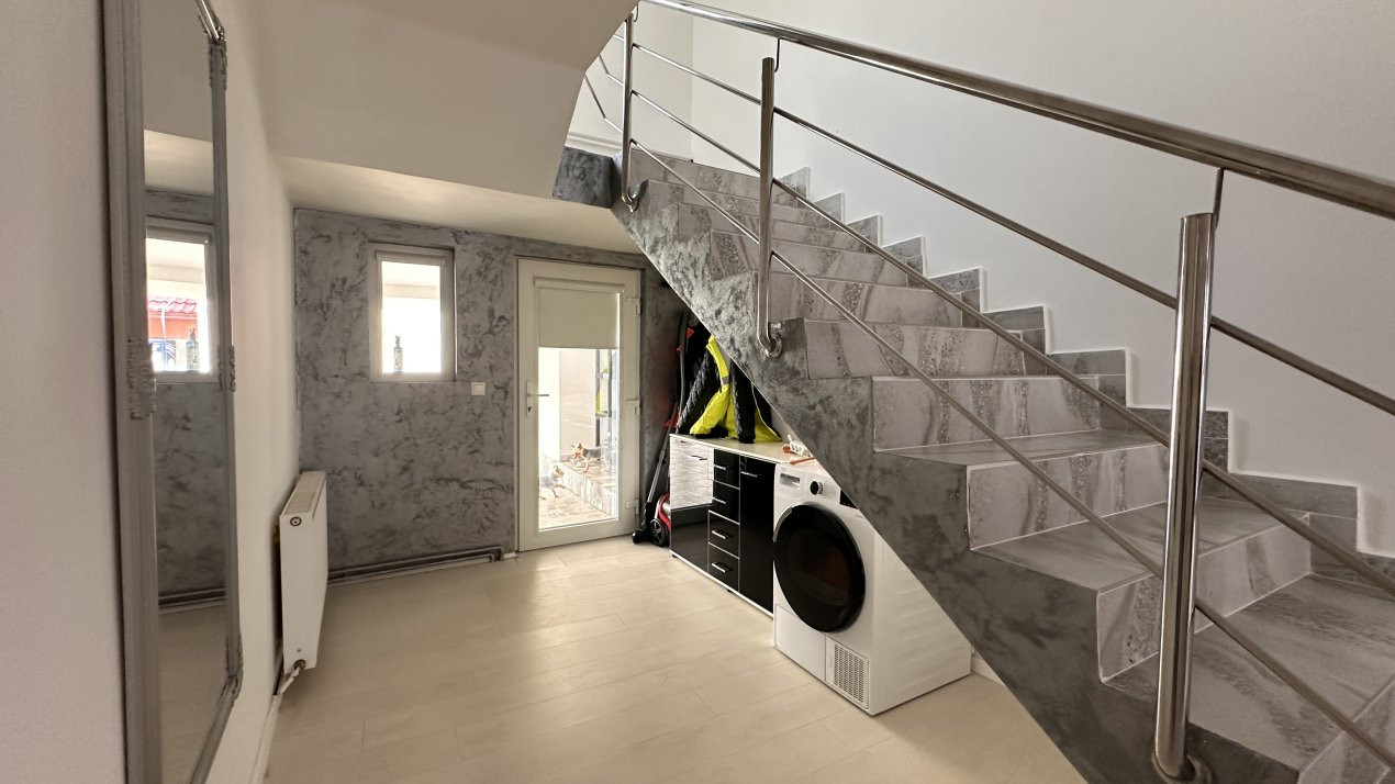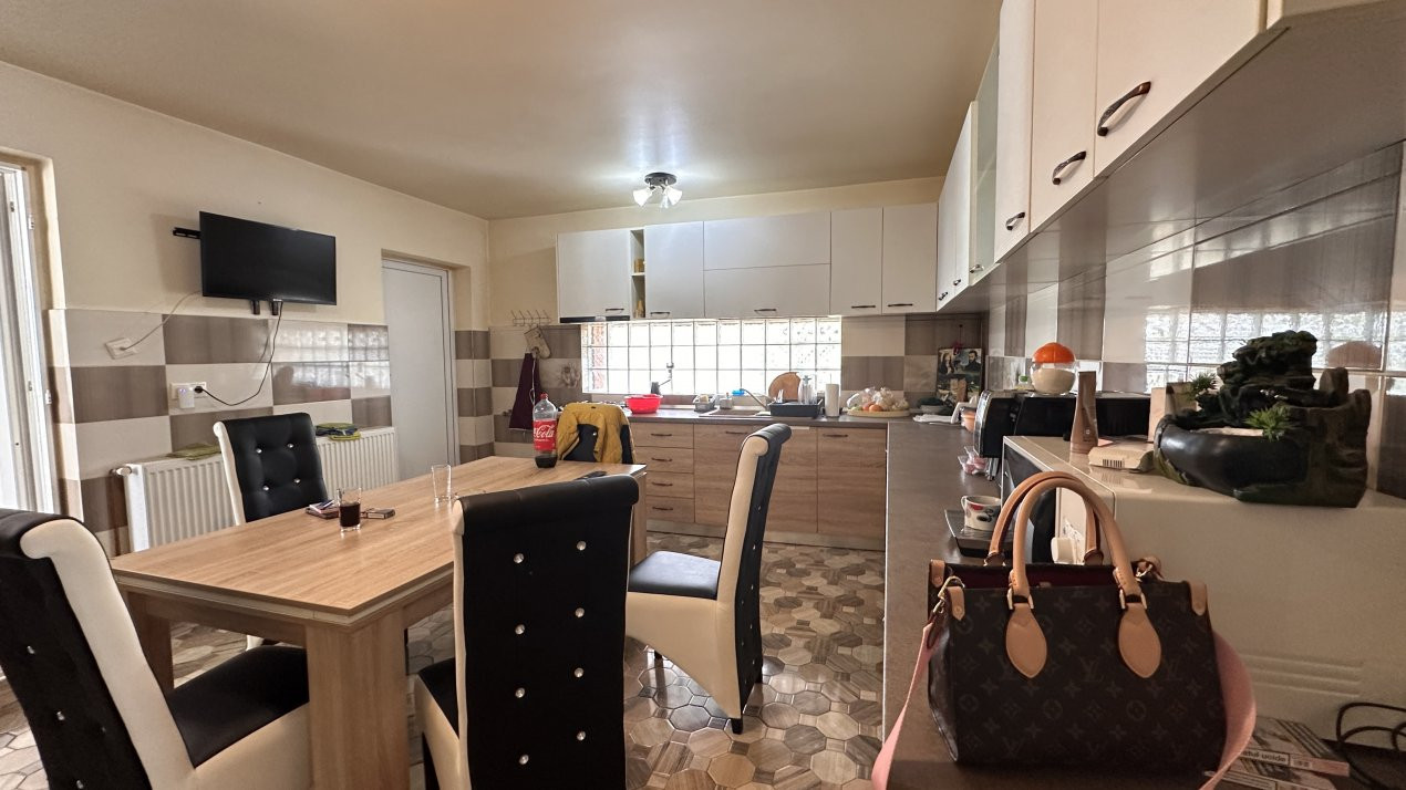 Casa se vinde semi mobilata si cu bucataria mobilata si utilata: plita, cuptor, hota, masina de spalat vase, frigider cu congelator.
