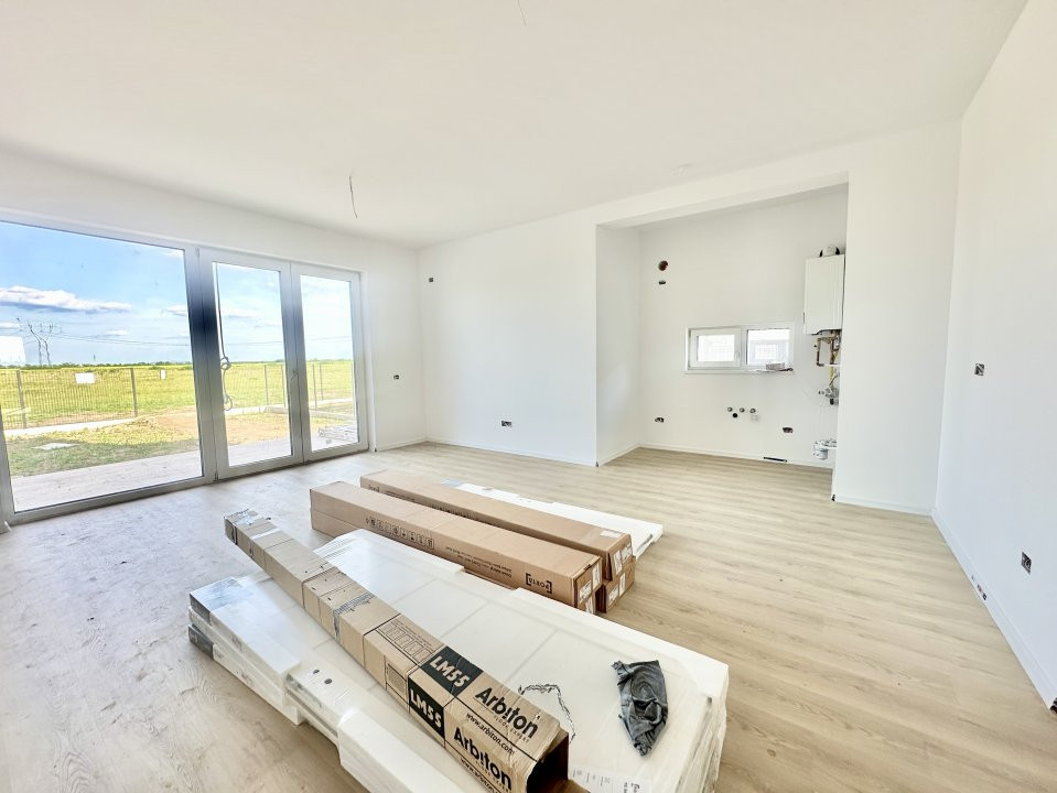 FOXFORT propune spre vanzare casa tip duplex, cu un regim de inaltime Parter situata in Mosnita Noua, avand un numar de 3 camere, cu o suprafata utila de 86 mp si teren 319 mp. Anul constructiei este 2025, structura beton, material zidarie caramida. Imobilul dispune de urmatoarele utilitati: curent electric, apa, gaz, fosa septica. Casa dispune de centrala proprie cu incalzire prin pardoseala, termostate ambientale si 2 locuri de parcare.