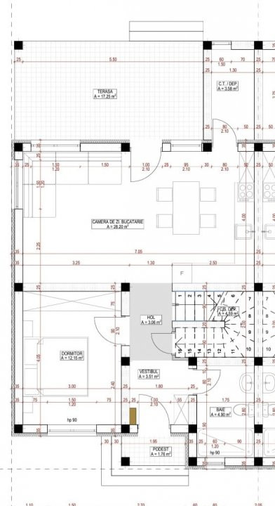- Parter: hol, living, baie, bucatarie, camera tehnica, dormitor, terasa;