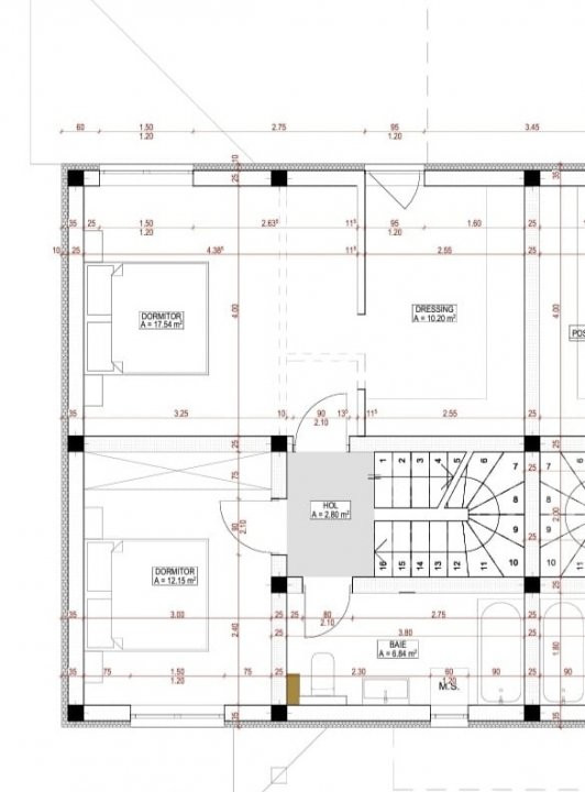 - Etaj: hol, 2 dormitoare, dressing, baie;