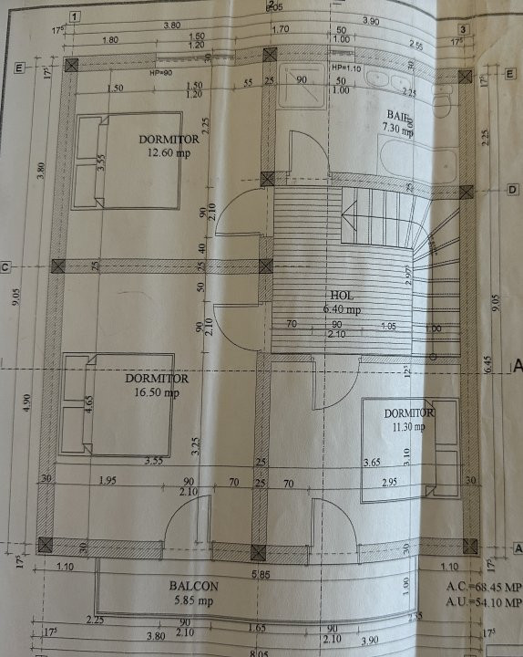 - Mansarda: hol, 3 dormitoare, baie, balcon.