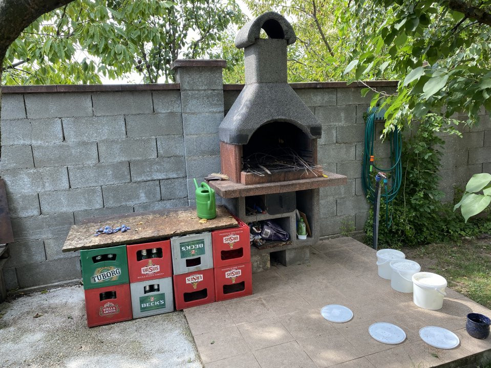 Gradina este COMPLET amenajata : plante decorative, foraj, corpuri de iluminat exterioare, gril. In spatele curtii exista casuta de depozitare.