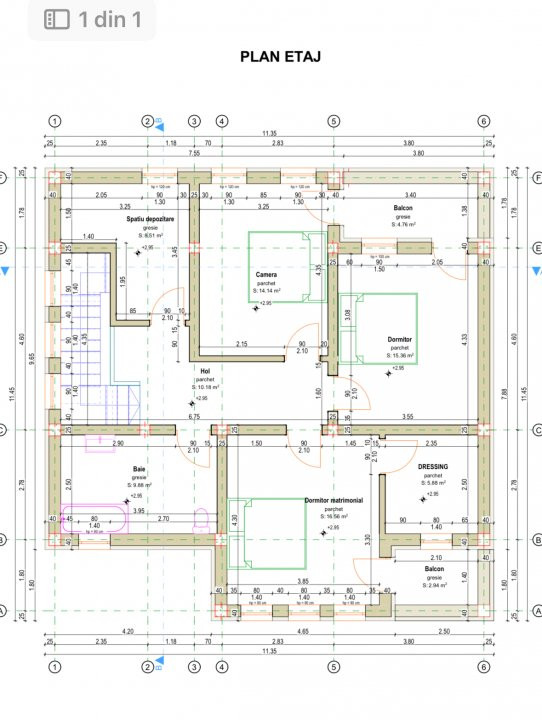 - Etaj: hol, 3 dormitoare, birou, 2 bai, 2 balcoane;