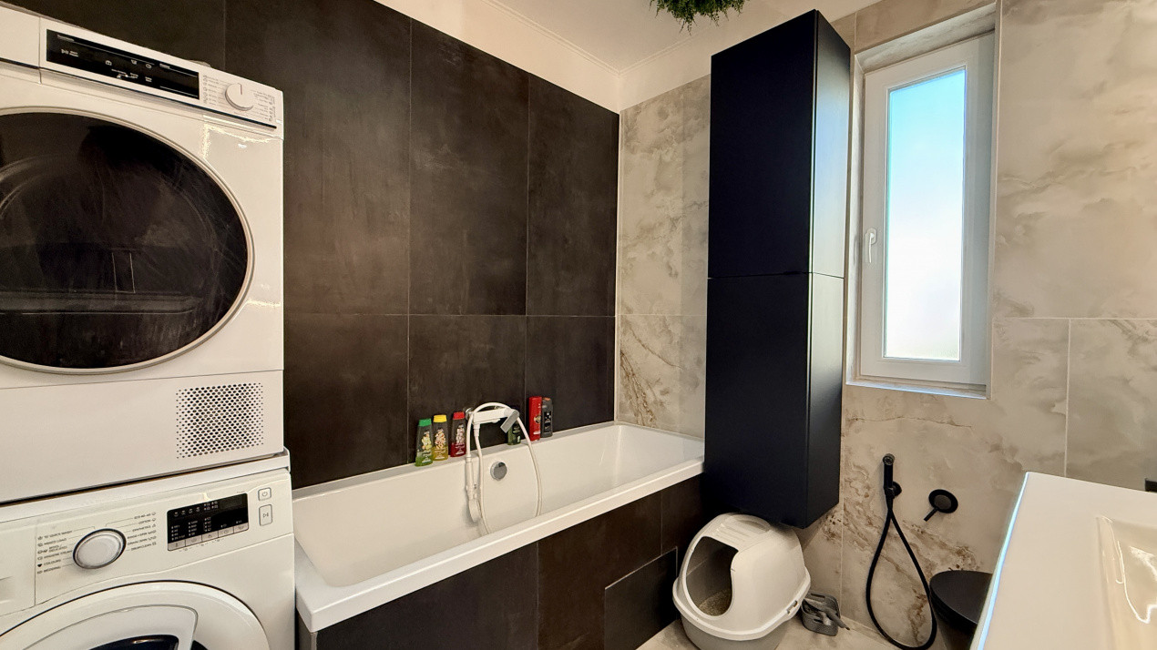 Casa se vinde complet mobilata si utilata: cuptor, hota, aragaz, masina de spalat rufe, masina de spalat vase, frigider cu congelator.