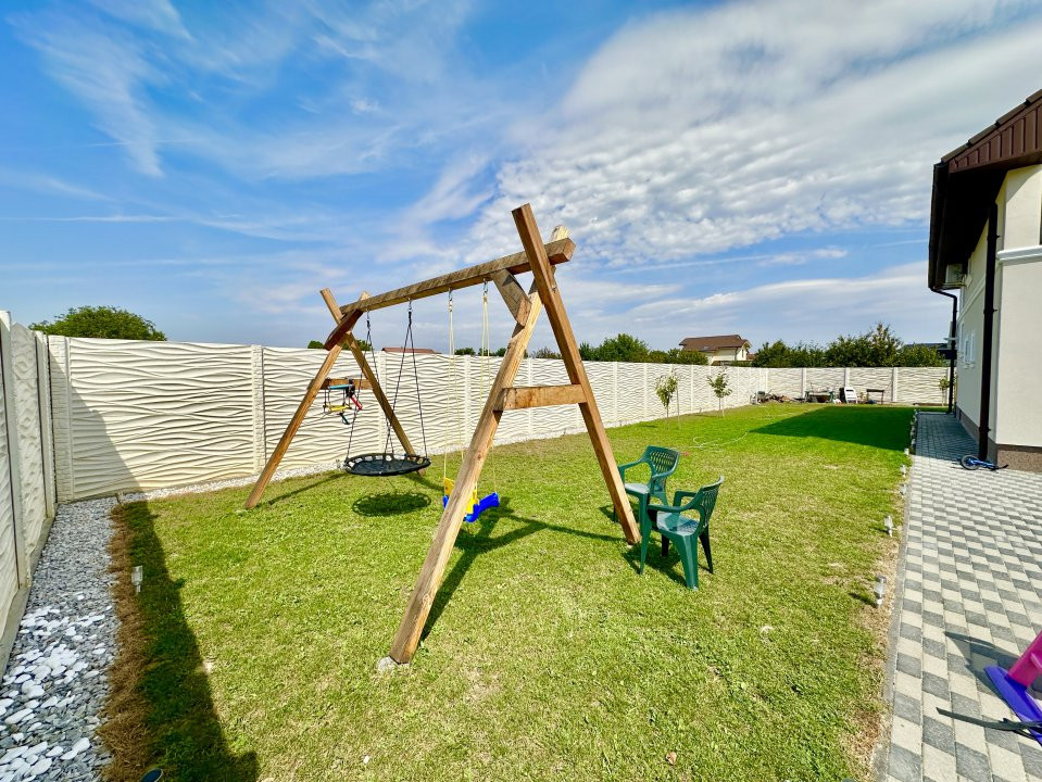 - Curte amenajata cu gazon si pomi fructiferi, perfecta pentru relaxare si joaca.