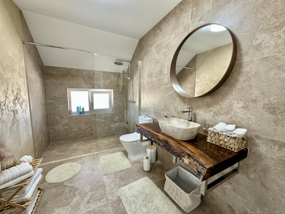 - Etaj: hol, baie, 3 dormitoare (doua dintre ele cu dressing propriu), balcon.