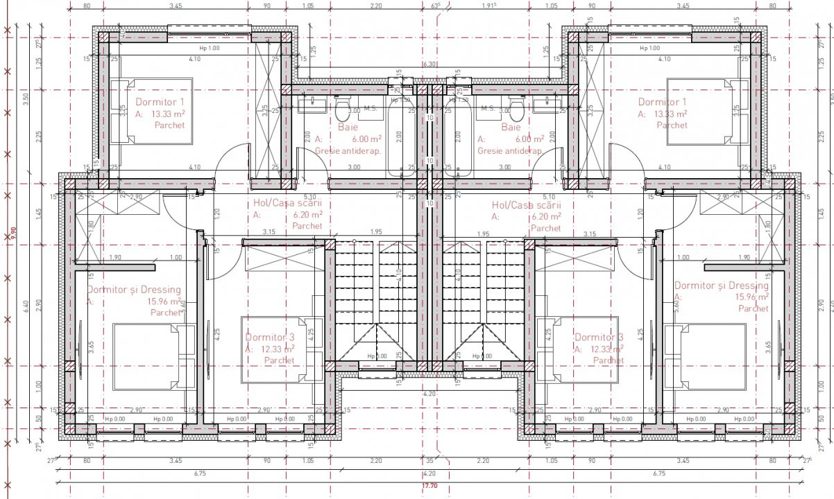 - Etaj: hol, 3 dormitoare, baie, terasa;