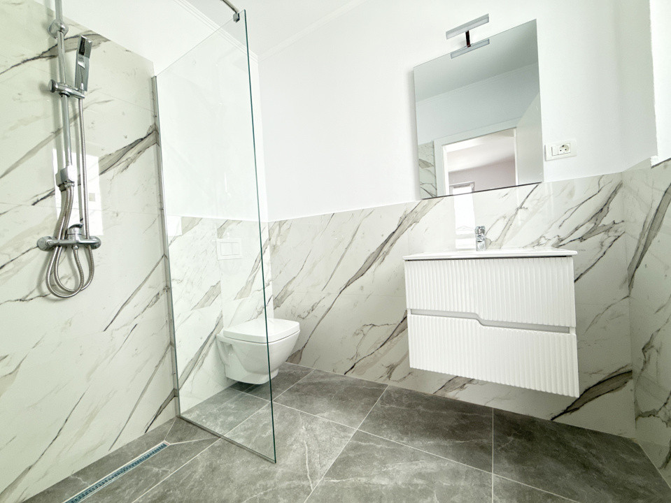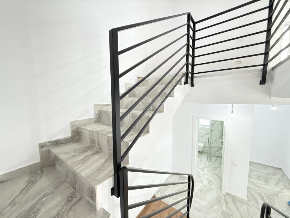 - Parter: hol, living cu bucatarie, 2 bai, camera tehnica, terasa acoperita;