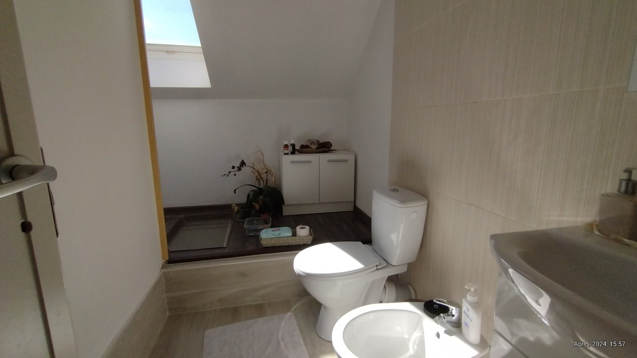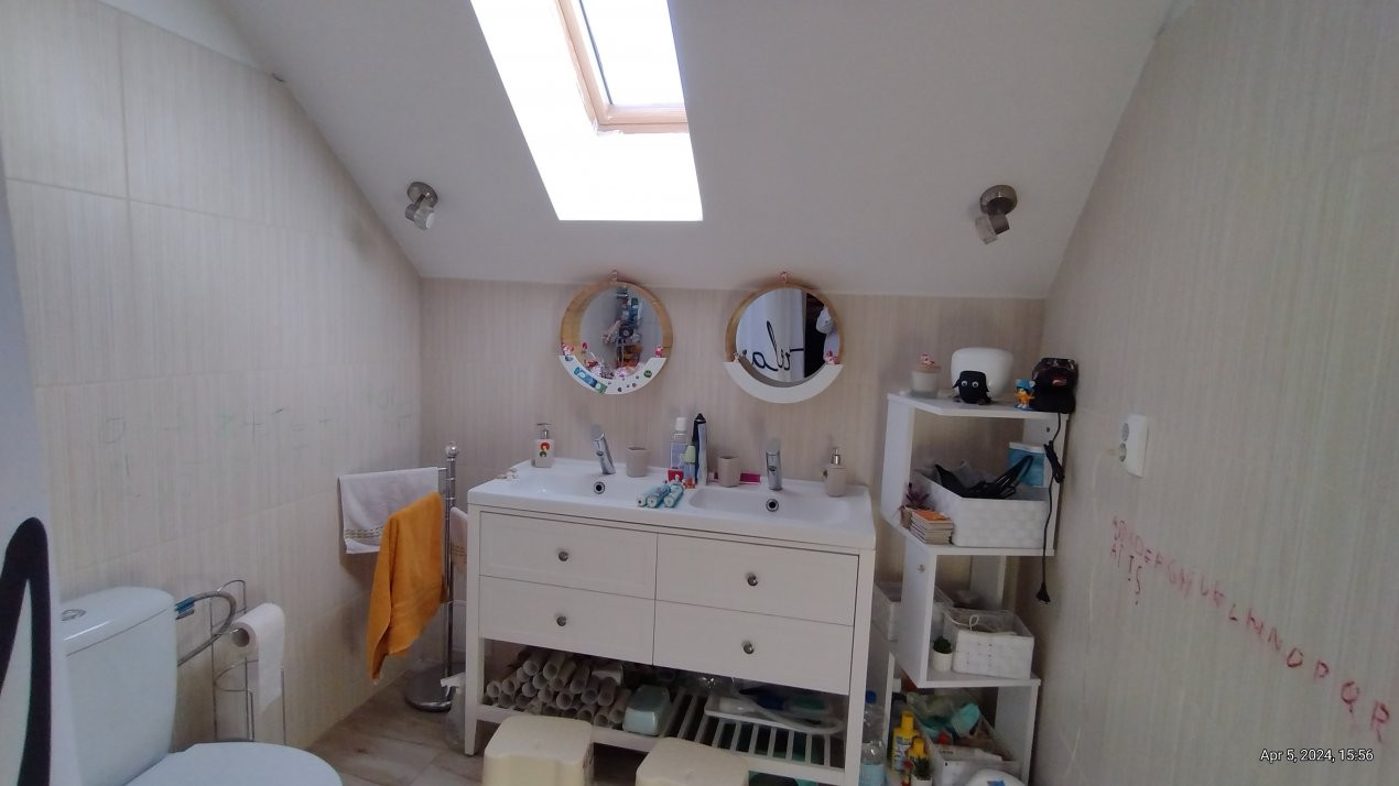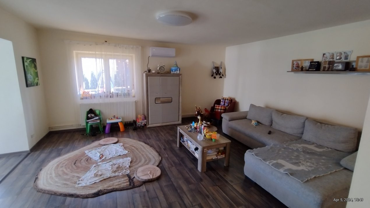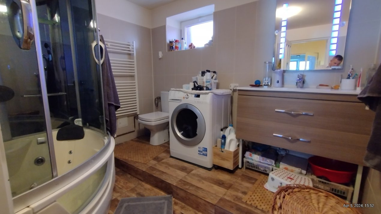 Casa se vinde partial mobilata, bucatarie mobilata si partial utilata: cuptor, plita, masina de spalat vase, masina de spalat rufe.
