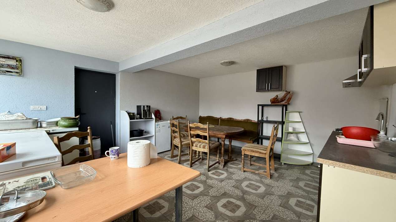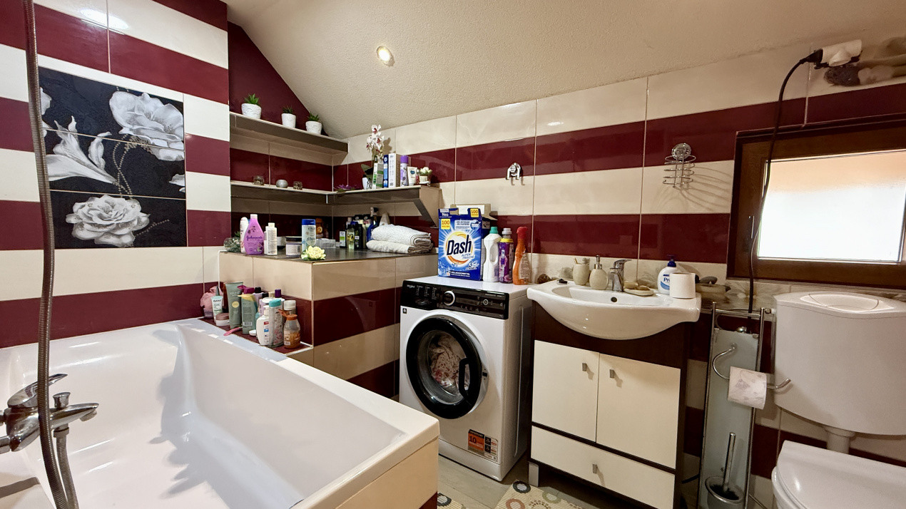 Casa se vinde mobilata si utilata: aragaz, cuptor, hota, aragaz, masina de spalat rufe, frigider cu congelator.