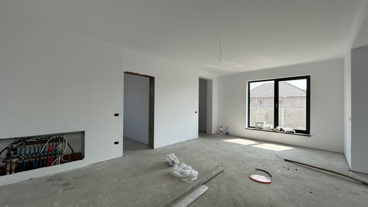FOXFORT propune spre vanzare casa tip duplex, cu un regim de inaltime Parter + Pod, situata in Sanandrei, zona Sud, avand un numar de 3 camere, cu o suprafata utila de 82 mp si teren 325 mp. Anul constructiei este 2025, structura este din beton cu zidaria din caramida. Imobilul dispune de urmatoarele utilitati: curent electric, apa, gaz, fosa septica, curent trifazic, fibra optica. Casa dispune de centrala proprie cu incalzire prin pardoseala si 2 locuri de parcare + alei pavate.