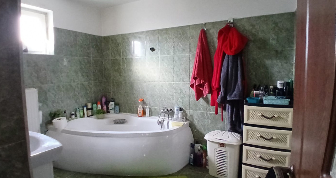 Casa se vinde mobilata si utilata: plita, cuptor, masina de spalat rufe, frigider cu congelator, lada frigorifica.