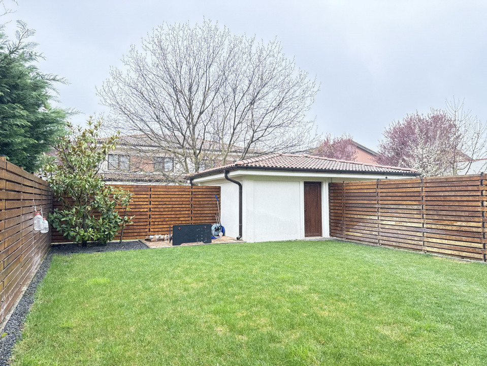 Curtea este amenajata cu gazon, are sistem de irigatii si in spatele curtii exista o anexa.