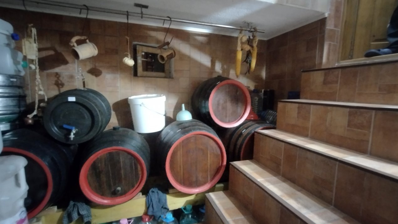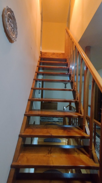 - Parter: hol, living spatios, bucatarie cu mobilier din lemn de cires, baie, camara si pivnita (10 mp);
