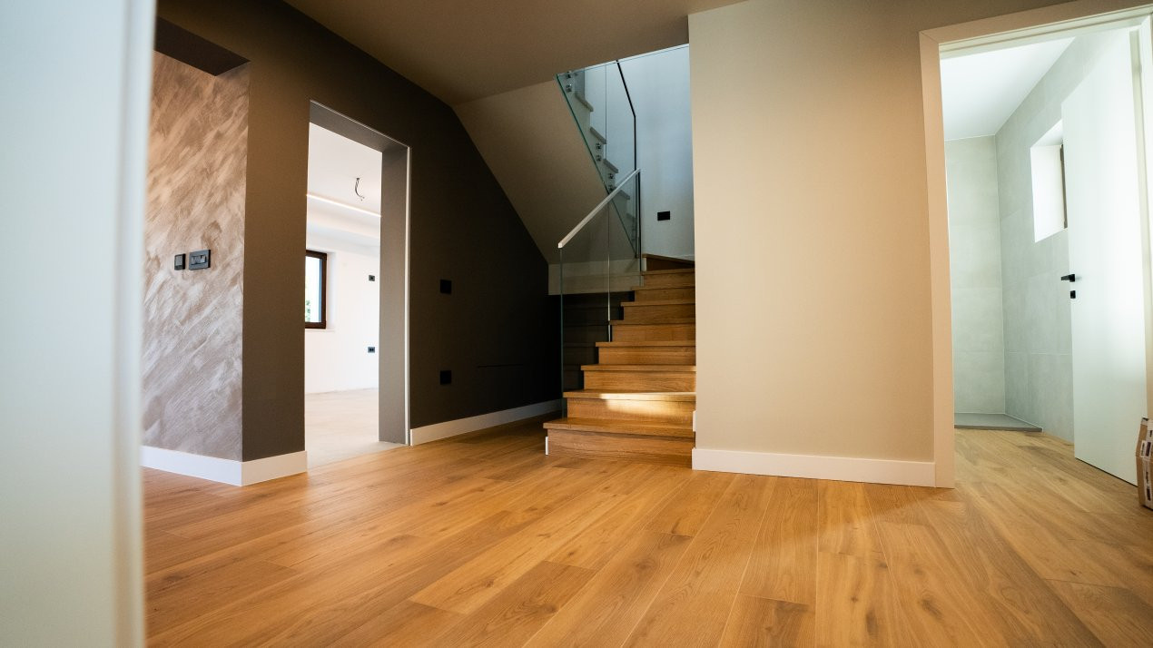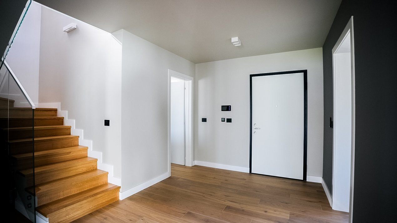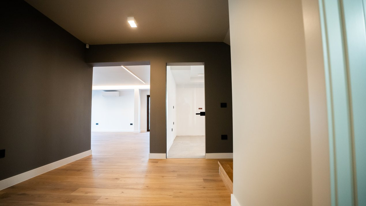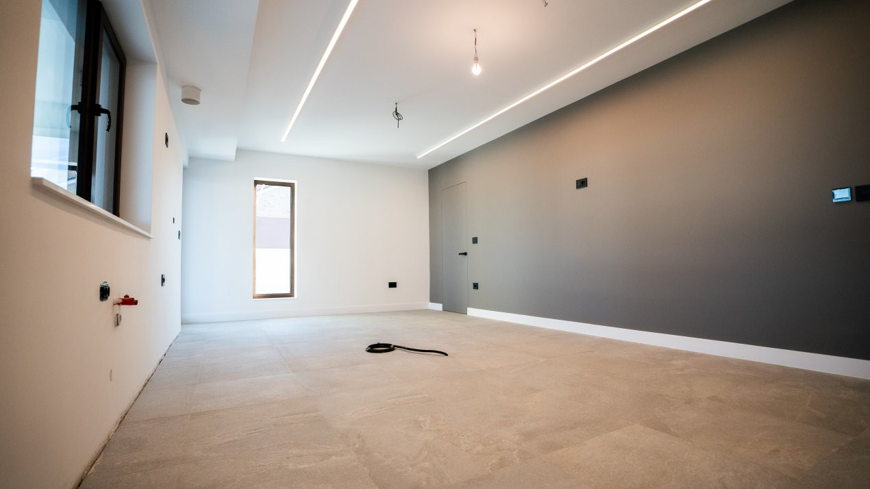 Sa folosit materiale de finisaj premium, placi ceramice din Italia, parchet triplu stratificat, usi senzationale atat filo muro cat si de sticla, balustrazi de sticla, obiecte sanitare deosebite, baterii lavoar si dus incastrat, panouri, cadite si cada de dus exceptionale, corpuri de iluminat, spoturi, vopsele lavabile si decorative de la producatori de top.