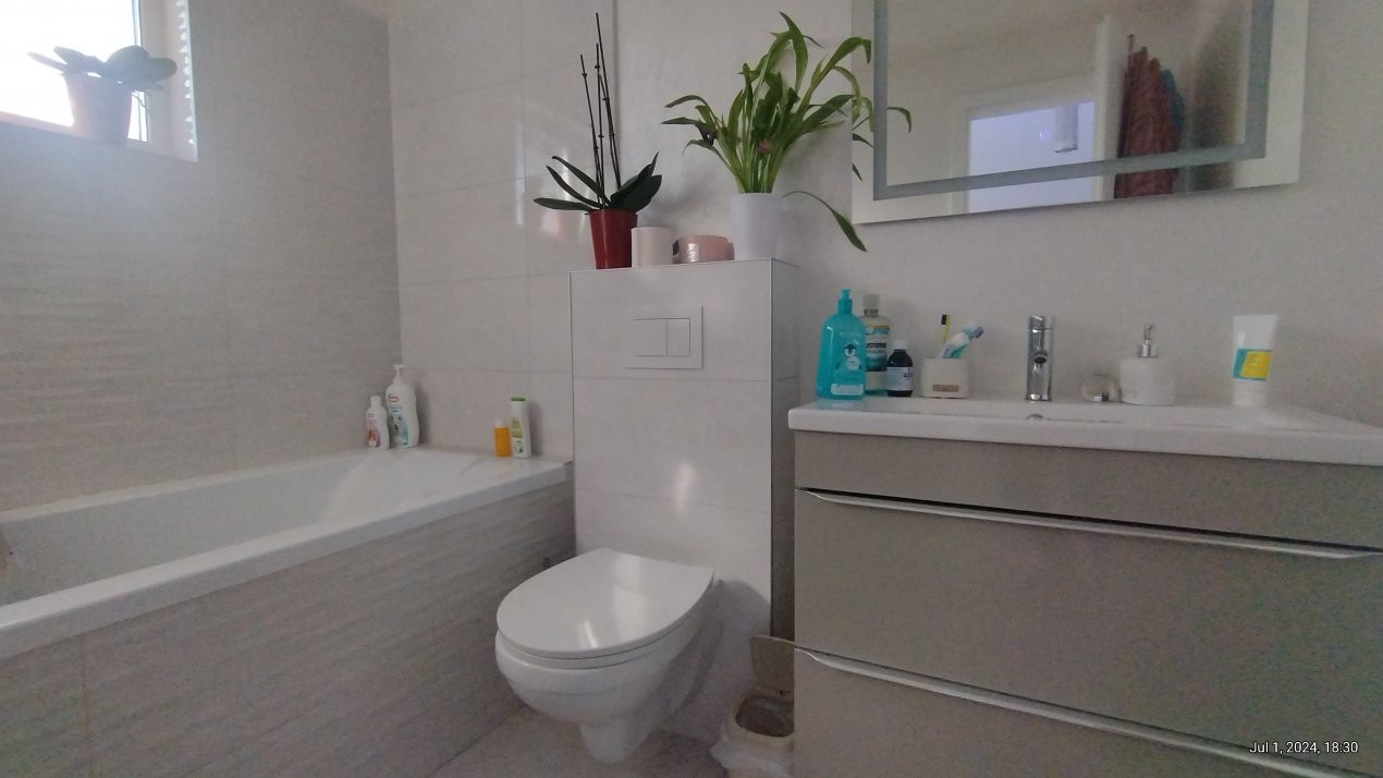 Casa se vinde mobilata si utilata: plita, cuptor, hota, masina de spalat rufe, masina de spalat vase, uscator de rufe, frigider, televizor.