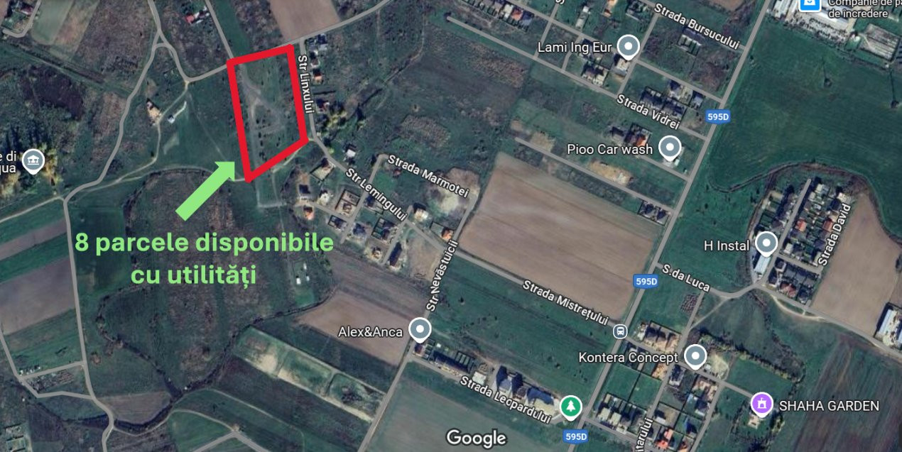 Utilitati: curent electric, apa, gaz si drum pietruit. Sunt disponibile mai multe parcele. Cele marcate cu litere V sunt vandute.