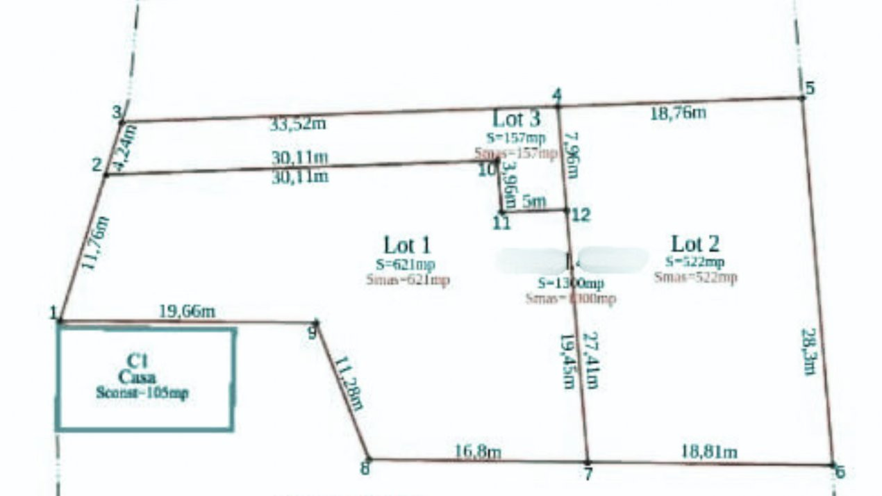 PUZ aprobat, teren format din 3 CF-uri, din care unul reprezinta drum cu drept de servitute.